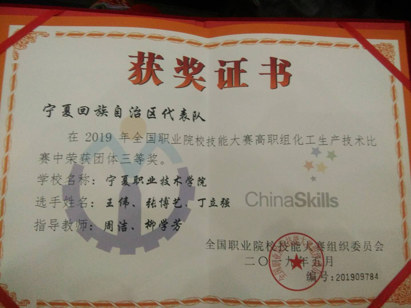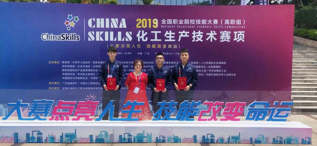5月13-17日,2019年全国职业院校技能大赛(高职组)化工生产技术赛项在广东轻工职业技术学院开赛。来自27个省、市、自治区,62所高职院校代表队聚集全国职业院校最顶尖的186名化工生产技术专业高手参加比赛。由工学院周洁、柳学芳指导的17级应用化工技术专业班丁立强、张博艺、王伟组成的化工生产技术团队喜获三等奖。