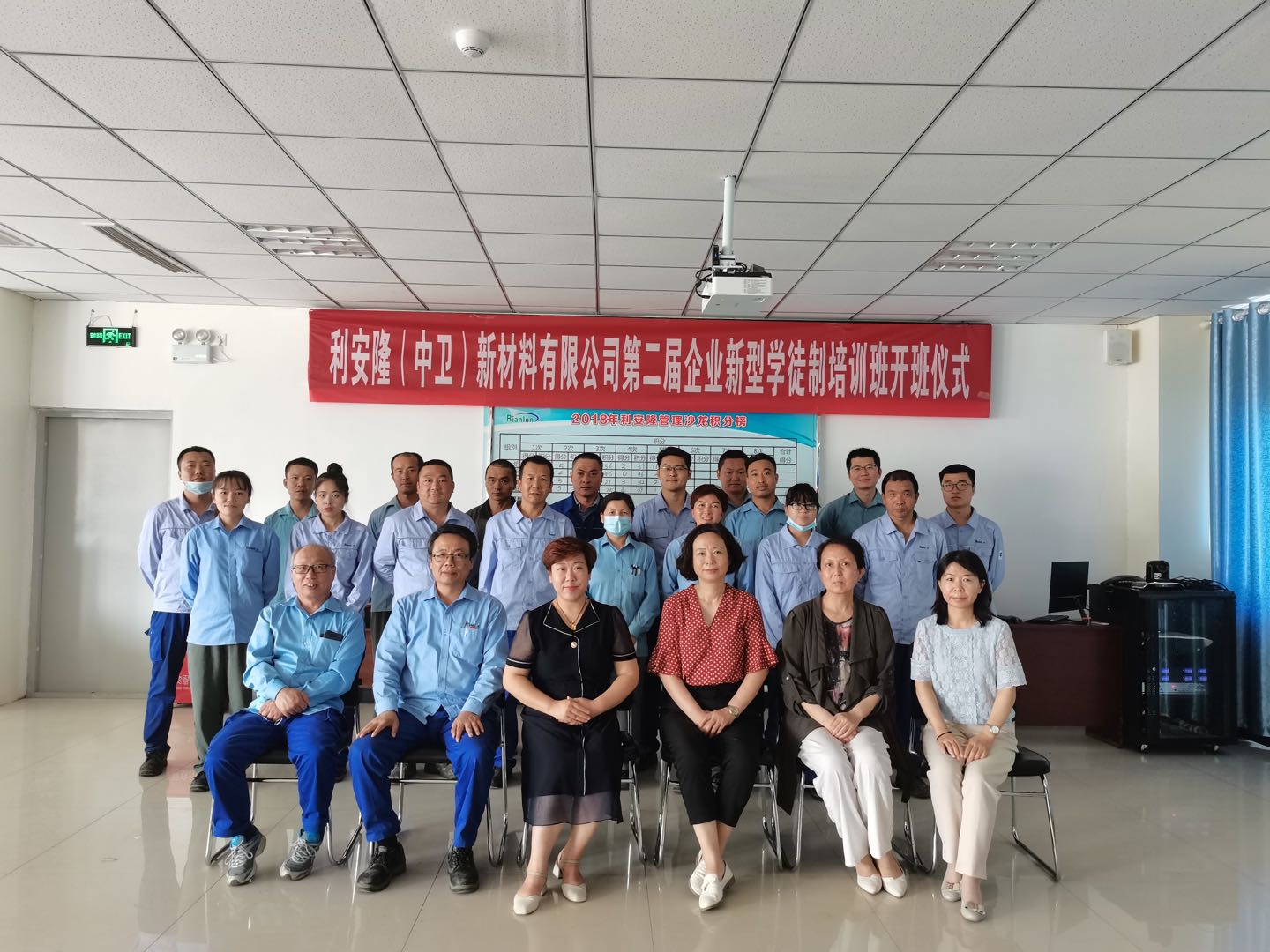 为深入贯彻落实国家、自治区职业技能提升行动实施方案(2019-2021)有关决策部署,有效推进以企业为主体的新型学徒制培训,助力企业职工提升职业素养、提高技能水平,7月17日上午,利安隆(中卫)新材料有限公司第二届企业新型学徒制培训班在中卫工业区园区利安隆(中卫)新材料有限公司正式开班。公司副总经理于进军、总调度长杨子江、中卫市人社局就业促进科科长刘晓燕、工学院院长李慧云、教师张宏、于建君及企业培训员工参加了开班仪式。