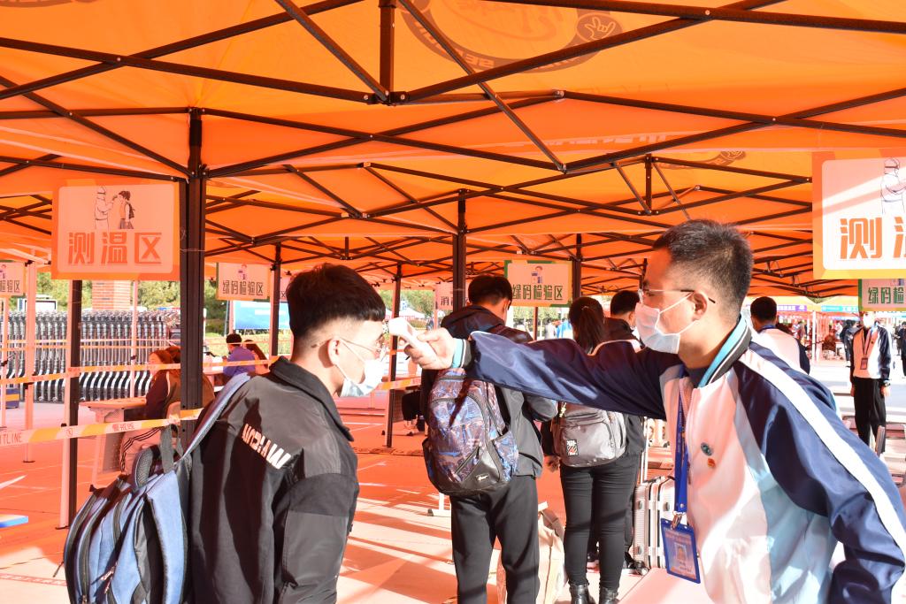 由于还在疫情期间,学校处于半封闭状态,志愿者和相关工作人员组织新生有序排好,保持距离,间隔一米五,挨个测温,对每个同学以及他们的行李消毒,不遗漏任何环节!在疫情的特殊背景下,家长无法陪伴进入校园,但是我们为家长们专门安排了休息区,让一路奔波的爸爸妈妈们歇歇脚。
