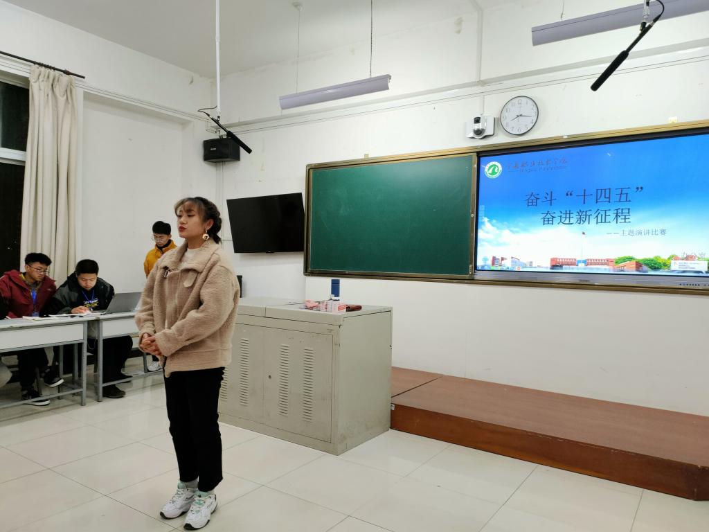 在“奋斗‘十四五’ 奋进新征程”主题演讲比赛中,同学们演讲内容主题鲜明、声音慷慨激昂,展现了我院学子爱国奋进的精神风貌。