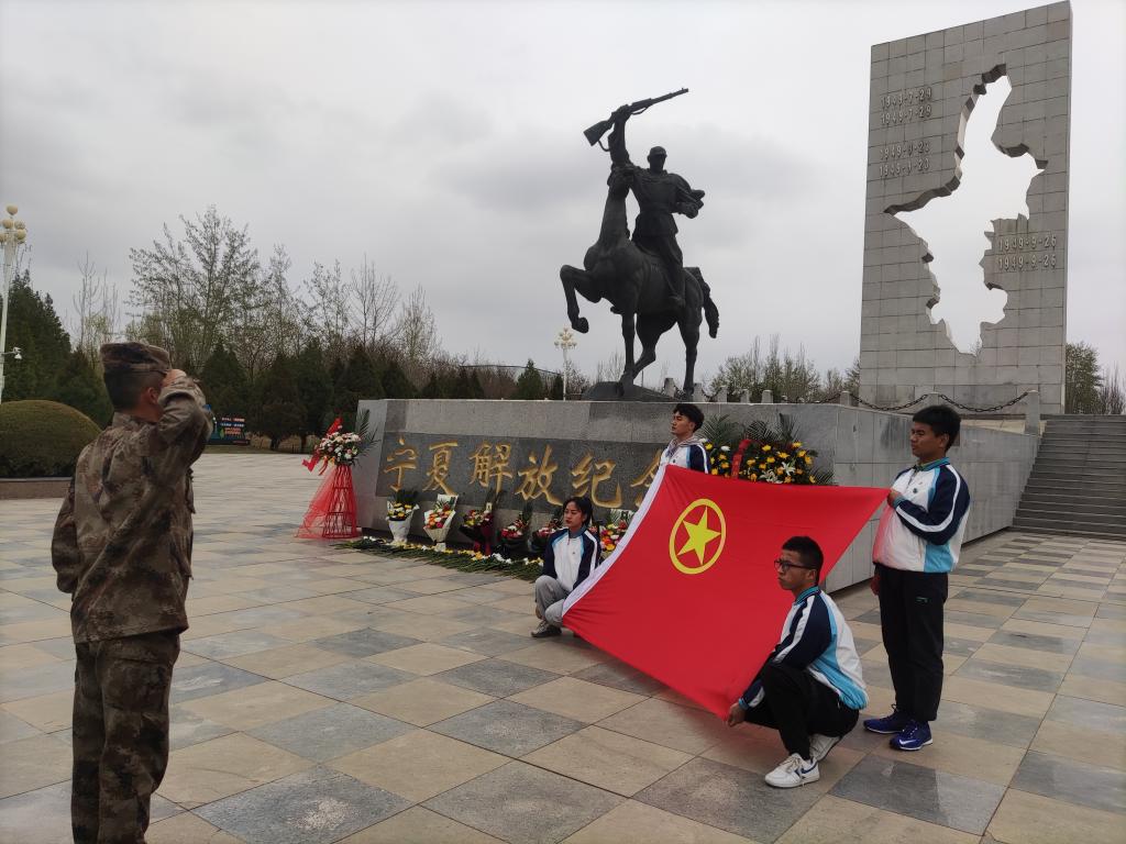 学院学生党支部书记解华老师主持了此次活动。活动开始,在场师生首先向烈士纪念碑敬献花束,并低头默哀,教师代表纪杭辛老师和士官生代表何涛同学先后发言,随后吴俊路与张浩海两名同学带来诗歌朗诵《英雄》,活动最后,全体党员、团员分别在党旗、团旗前,庄严宣誓,重温入党、入团誓词。纪念仪式后,师生一起参观解放纪念碑广场,了解宁夏解放纪念碑历史和崔景岳、马文良、孟长有三位烈士的英勇事迹,接受了党史、新中国史教育和启迪。