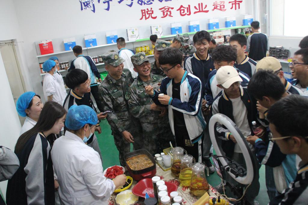 参观完脱贫示范基地后,师生们又坐车来到了闽宁禾美电商工厂。致力于打造消费扶贫品牌的闽宁禾美为许多留守妇女提供了就业机会和收入来源,该厂通过互联网+电商、直播带货等新模式,推动闽宁两地特色产品互通有无,带动当地产业发展,经济繁荣。