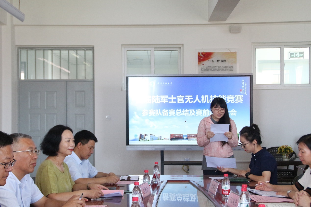 9月1日下午,首届陆军士官无人机技能竞赛参赛队备赛总结及赛前动员大会在永利3044noc409会议室召开。会议由永利3044noc院长李慧云主持,校长刘炜,党政办公室、教务处、就业与合作交流处、学生工作部相关领导,永利3044noc班子成员,天之翼航天科技有限公司负责人、指导教师和参赛学生参加了此次会议。
