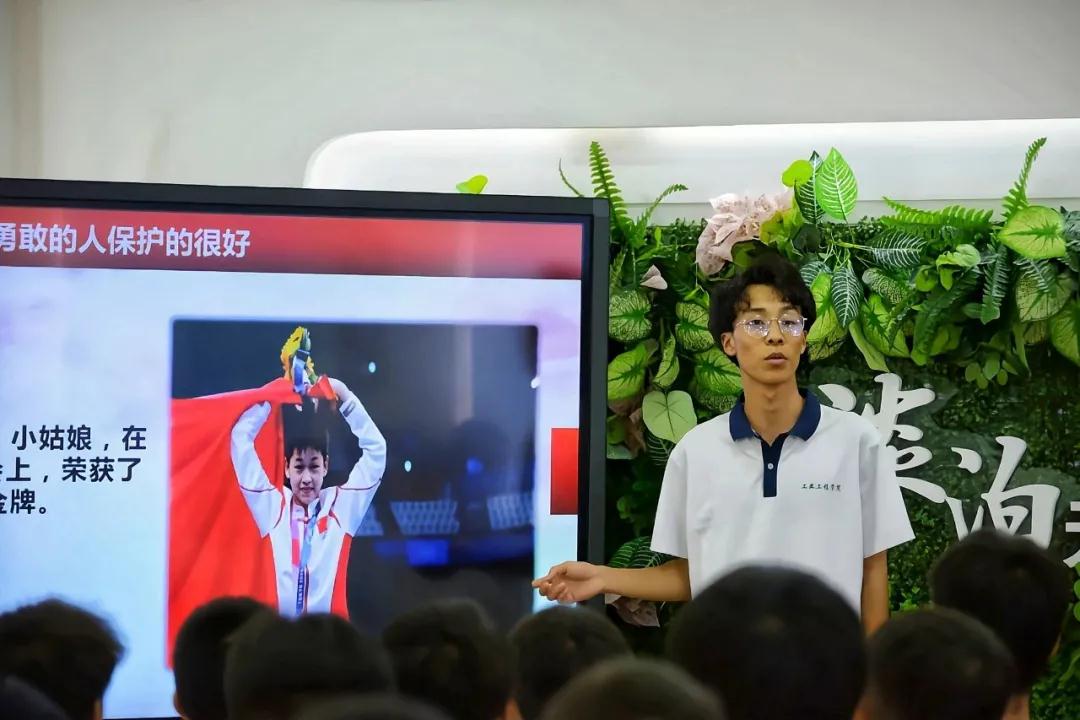 第二项活动以近期热播的由中宣部、教育部等单位联合制作的主题为《 理想照亮未来——开学第一课》为背景,由四位同学分别通过图片、视频等方式分享心得感悟。他们或慷慨激昂、或娓娓道来,或低沉委婉,仿佛把大家又带到了“开学第一课”的课堂中,带到英雄的故事里,感受着他们炙热、浓烈、深沉的爱国之情。