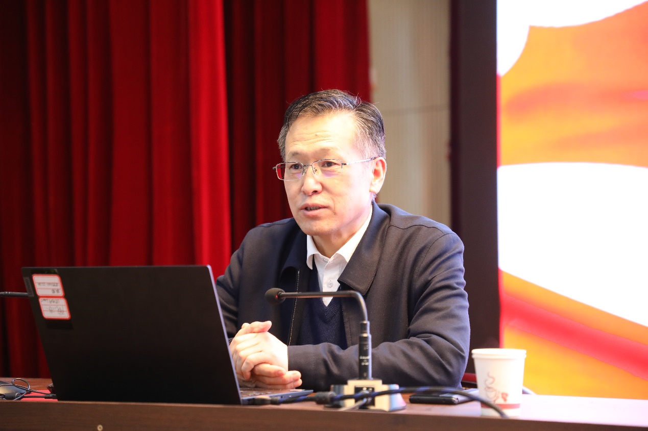 党委书记赵利宁首先对十九届六中全会作了简要介绍,然后深入浅出地从历史逻辑、现实价值、本体论、方法论、重点论等方面阐述了《中共中央关于党的百年奋斗重大成就和历史经验的决议》的生成背景,诠释了《决议》的重大现实意义和深远历史意义,随后详细解读了《决议》的主要内容,重点梳理了《决议》中“两个确立”“三个需要”“三次飞跃”“四个时期”“四个伟大成就”“四个庄严宣告”“五大历史意义”“十大历史经验”等内容,以及十九届六中全会公报新论断、新表述。