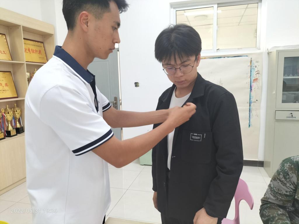 入团仪式在庄严的国歌声中拉开帷幕。张帅宗宣读了新发展团员名单,并向新团员表示热烈欢迎。田忠、任馥晟作为老团员为新发展团员授戴团徽。