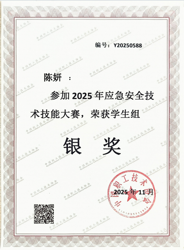 备赛期间,指导教师周洁、王蓓蓓带领学生紧扣赛事要求,深耕专业知识,强化实操训练,在理论学习与技能打磨中不断突破;比赛现场,选手们沉着应战、精准操作,既展现了新生代应急安全人才扎实的知识基础和创新思维,又彰显了面对复杂场景时的高效应急处置能力,最终以团队总分第一的优异成绩站上最高领奖台。